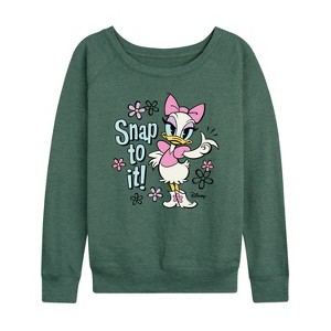 Disney - Daisy - Snap To It - Women's Lightweight French Terry Long Sleeve Shirt - Add a touch of magic to your wardrobe with this graphic apparel featuring iconic Disney designs. Showcasing beloved characters and classic imagery, each piece combines nostalgic charm with modern style—perfect for Disney fans of all ages. Whether you're headed to the parks or just adding whimsy to your everyday look, these graphics bring the magic to life.