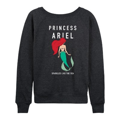 Women's Disney Ariel in Water Lightweight French Terry Wide Neck Long Sleeve Graphic Shirt - Heather Charcoal - Small