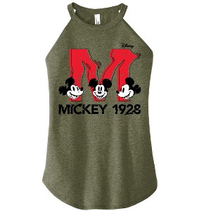 Women's Disney Mickey & Friends Graphic High Neck Tank - Heather Military Green - 2 X-Large