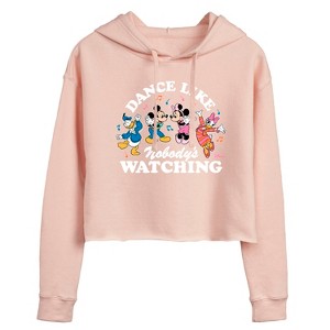 Disney - Mickey & Friends - Daisy, Minnie, Donald Duck, & Mickey - Dance Like Nobody's Watching - Juniors Cropped Pullover Hoodie - Add a touch of magic to your wardrobe with this graphic apparel featuring iconic Disney designs. Showcasing beloved characters and classic imagery, each piece combines nostalgic charm with modern style—perfect for Disney fans of all ages. Whether you're headed to the parks or just adding whimsy to your everyday look, these graphics bring the magic to life.