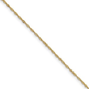 - Unique Features - Twisting links of 14k yellow gold form a distinctive feminine chain that will add an unexpected shimmer to your favorite charm or pendant thanks to its diamond-cut styling. This beautiful Singapore chain is 1mm in width and closes with a classic lobster claw clasp. Made in Italy.