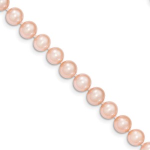 - Unique Features - Nothing compares to the beauty and classic sophistication of pearls, the gem of the water and always appropriate. This pink freshwater cultured pearl necklace features 6 to 7mm near round pearls single knotted by polyester thread and a 14k yellow gold pearl clasp. Due to the natural of pearls, please allow for slight variations in size and color. Gemstone treatment: dyed. Available in 16-inch, 18-inch, 20-inch or 24-inch lengths.