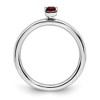 Unique Features - Make it simple and stylish with bands of different textures, finishes, widths and colors or extravagant with diamonds and gemstones! This stackable ring created from rhodium-plated .25 sterling silver features 2 princess-cut genuine garnets totaling 1/2 carat. The approximate band width is 2. Mm and the ring top is approximate 4 x 6.5mm. The color range varies on all genuine gemstones so please allow for slight variations in shades (medium to dar...See description for more