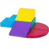 Soft Play Set - 1 straight Slide, 1 square, 2 quarter round mats, 1 curved slide, 1 stairs. The set measures: 47"L x 31.4"W x 8"H