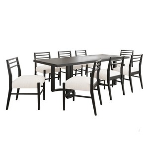 Christopher Knight Home Valenro 9 pcs Rubberwood Upholstered Dining Set, Beige/Black
