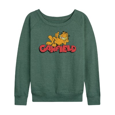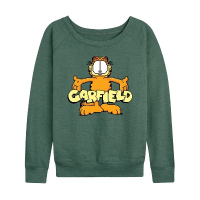 Women's Garfield Party Animal Lightweight French Terry Wide Neck Long Sleeve Graphic Shirt - Heather Juniper - X-Large