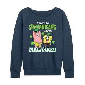 Women's - SpongeBob Squarepants - Prone To Shenanigans And Malarkey Lightweight French Terry Wide Neck Long Sleeve Graphic Shirt - 1 of 4