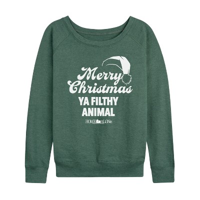 Women's Rocket Power Finish Line Lightweight French Terry Wide Neck Long Sleeve Graphic Shirt - Heather Juniper - 2 X-Large