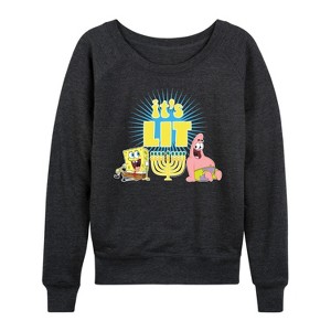 Women's - SpongeBob SquarePants - It's Lit Hanukkah Lightweight French Terry Wide Neck Long Sleeve Graphic Shirt - 1 of 4