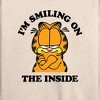 Women's - Garfield - Smiling On The Inside Lightweight French Terry Wide Neck Long Sleeve Graphic Shirt - 1 of 4