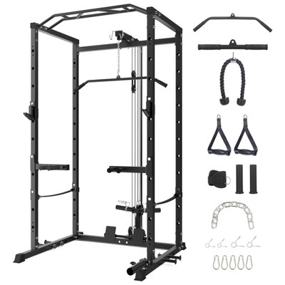 1600 Lbs Power Rack for Home Gym Squat Rack with Cable Pulley System & LAT Pull Down Workout Cage Strength Training Weight Cage with Dip Bar & J Hooks for Multiple Exercises, Black