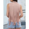 Women's Tassel Vest Hippie Faux Suede Rivets Sleeveless Costume Fringe Jacket Apricot 2XL
