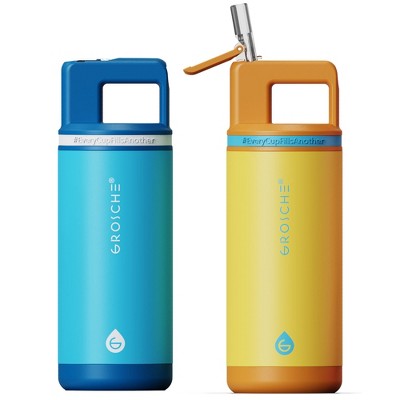 ALPINE Flip 'N Sip Kids Insulated Water Bottle With Straw - 16oz Kids Water Bottle, Sandcastle Yellow
