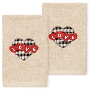 Linum Home Textiles Love Hearts - Embroidered Luxury 100% Turkish Cotton Hand Towels (Set of 2)