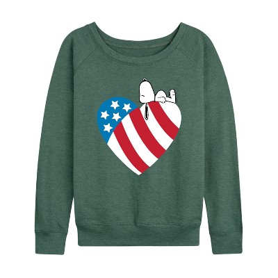 Women's - Peanuts - Snoopy On Flag Heart Lightweight French Terry Wide Neck Long Sleeve Graphic Shirt - 2 of 4Women's - Peanuts - Snoopy On Flag Heart Lightweight French Terry Wide Neck Long Sleeve Graphic Shirt - 3 of 4Women's - Peanuts - Snoopy On Flag Heart Lightweight French Terry Wide Neck Long Sleeve Graphic Shirt - 4 of 4