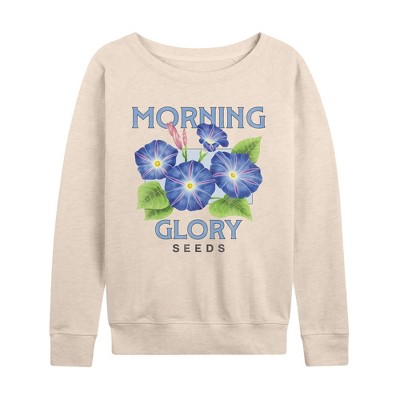 Women's Peanuts Campfire Mugs Lightweight French Terry Wide Neck Long Sleeve Graphic Shirt - Birch - Small