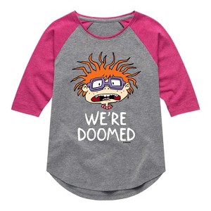 Girls' Rugrats Chuckie We're Doomed Shirt Tail Raglan Graphic T-shirt - Athletic/Fuchsia - 2T