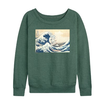 Women's Peanuts New York Snoopy Lightweight French Terry Wide Neck Long Sleeve Graphic Shirt - Heather Juniper - Medium