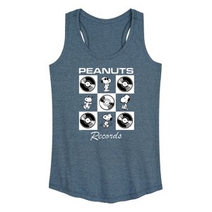 Peanuts - Snoopy Vinyl - Women's Racerback Tank Top - From the best-loved comic strip in history comes officially licensed PEANUTS apparel for fans everywhere. Show your love for Charlie Brown, Snoopy, Woodstock, Lucy, Linus, Pigpen and the whole gang. Copyright Peanuts.