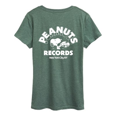 Peanuts - Snoopy Vinyl Grid - Women's Short Sleeve Graphic T-Shirt - From the best-loved comic strip in history comes officially licensed PEANUTS apparel for fans everywhere. Show your love for Charlie Brown, Snoopy, Woodstock, Lucy, Linus, Pigpen and the whole gang. Copyright Peanuts.