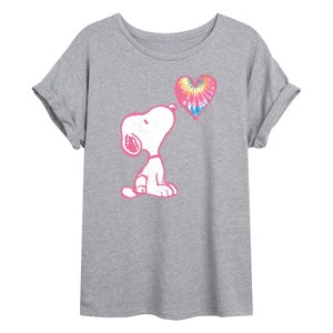 Peanuts - Snoopy Pastel Rainbow Heart - Women's Oversized T-Shirt - From the best-loved comic strip in history comes officially licensed PEANUTS apparel for fans everywhere. Show your love for Charlie Brown, Snoopy, Woodstock, Lucy, Linus, Pigpen and the whole gang. Copyright Peanuts.