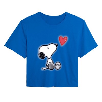 Peanuts - Space Snoopy Flair - Juniors Cropped Cotton Blend T-Shirt - From the best-loved comic strip in history comes officially licensed PEANUTS apparel for fans everywhere. Show your love for Charlie Brown, Snoopy, Woodstock, Lucy, Linus, Pigpen and the whole gang. Copyright Peanuts.
