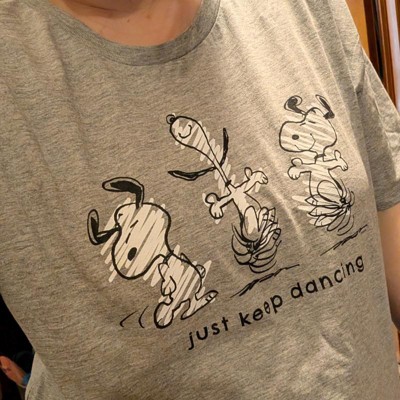 Women's Peanuts Snoopy Just Keep Dancing Oversized Graphic T-Shirt - Heather Grey - Large
