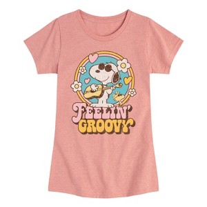 Girls' - Peanuts - Feelin Groovy Snoopy And Woodstock Fitted Short Sleeve Graphic T-Shirt - 1 of 4