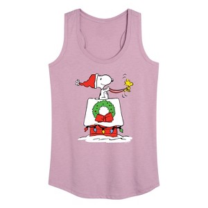 Women's - Peanuts - Snoopy and Woodstock House Sleigh Graphic Racerback Tank - 1 of 4