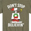 Boys' Peanuts Snoopy Christmas Don't Stop Believin' Short Sleeve Graphic T-Shirt - Don't Stop Believin' Snoopy - Heather Military Green - Small