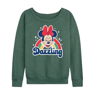 Women's Disney Eat the Rainbow Minnie Lightweight French Terry Wide Neck Long Sleeve Graphic Shirt - Heather Juniper - Medium
