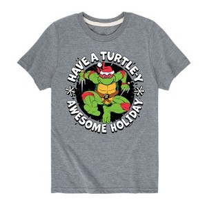Teenage Muntant Ninja Turtle - Have A Turtley Awesome Holiday - Toddler And Youth Short Sleeve Graphic T-Shirt - Unleash your inner hero with Teenage Mutant Ninja Turtles graphic apparel, featuring bold and colorful designs of the iconic heroes in a half shell—Leonardo, Donatello, Raphael, and Michelangelo. Perfect for fans of all ages, this collection celebrates the action-packed adventures, brotherhood, and fun-loving spirit of these legendary sewer-dwelling ninjas.
