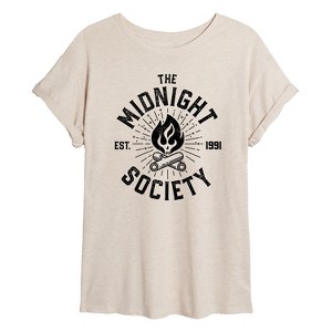 Are You Afraid Of The Dark? - Midnight Society Est. 1991 - Women's Oversized Graphic T-Shirt - Bring the chills with Are You Afraid of the Dark? graphic apparel, featuring haunting designs inspired by the iconic horror anthology series. Showcasing eerie imagery, mysterious symbols, and references to unforgettable tales told by the Midnight Society, each piece captures the spine-tingling nostalgia and spooky atmosphere that defined '90s Nickelodeon scares. Perfect for fans who love a good fright and timeless campfire storytelling.