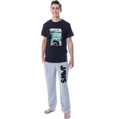 CLASSIC CHARACTER DESIGN - The set-top features the classic Jaws film movie poster in a distressed style. The pajama pants feature the Jaws movie film logo running down the leg.