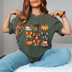 The 'Turkey Coquette' design features a playful and colorful illustration of a charming turkey, perfect for adding a touch of whimsy to your holiday festivities. With its bright feathers and cute expression, this design is sure to bring a smile to everyone's face. Whether you're celebrating Thanksgiving or simply love all things turkey, this dynamic design is a fun addition to any wardrobe or home decor. Embrace the spirit of the season with the 'Turkey Coquette' print on demand design! Introducing our trendy Garment Dyed Tee. Unisex fit with a vintage feel that improves with wear. Made from high-quality materials and featuring a unique print. Upgrade your wardrobe with this timeless piece.