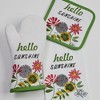 Brighten up your kitchen with the cheerful Hello Sunshine Kitchen Set. This 6-piece set features a vibrant floral pattern and the uplifting phrase "Hello Sunshine" on each piece. Crafted from soft, durable 100% cotton, this set is both functional and stylish. Perfect for adding a touch of sunshine to your daily cooking and baking routine.