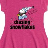 Peanuts - Snoopy & Woodstock Chasing Snowflakes Christmas - Toddler And Youth Girls Fit And Flare Dress - From the best-loved comic strip in history comes officially licensed PEANUTS apparel for fans everywhere. Show your love for Charlie Brown, Snoopy, Woodstock, Lucy, Linus, Pigpen and the whole gang. Copyright Peanuts.