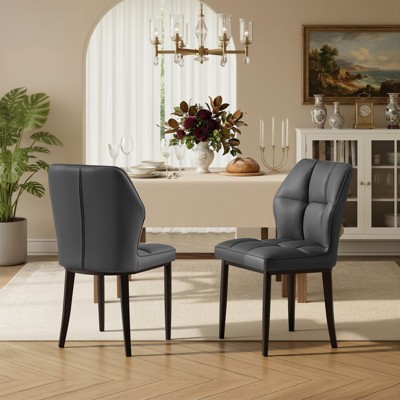 VECELO Upholstered Dining Chairs Set of 2 Button Tufted High Back Chairs Padded Seat & Rubber Wooden Legs Dining Room Chairs Gray