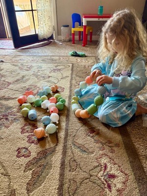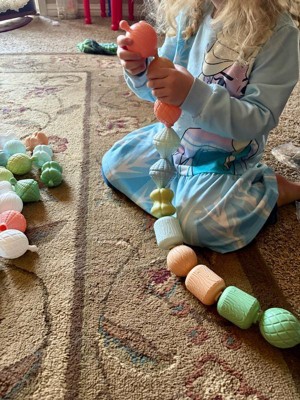 [This review was collected as part of a promotion.] these are a lot bigger than I expected in the best way possible they are great for people who struggle with fine motor function. The color is super cute and there’s lots of ways that you can play with them. It’s a sturdy or plastic, which means they’re not easy to break which I love.