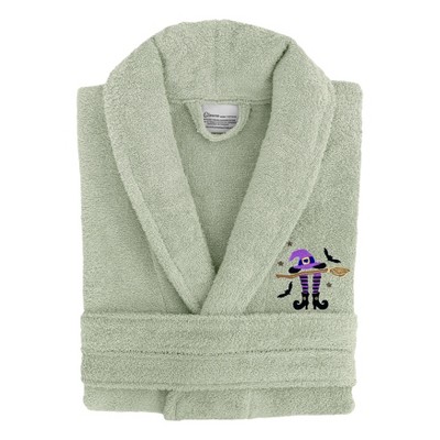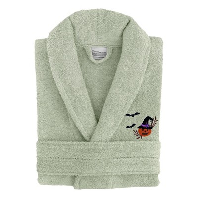 Linum Home Textiles 100% Turkish Cotton Embroidered ''Hers'' Terry Bathrobe in Script Font - Green/Gold - Small/Medium