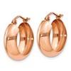 Simple and classic, our mirror polished 14k rose gold earrings feature a half round hoop design with an open back that is as flattering, as it is beautiful. They are finished with a snap down, hinged post and measure 7mm (1/4 inch) wide by 18mm (11/16 inch) in diameter. Additional features include: polished 14k rose gold design; half round, hollow open back style; approximate size 7 x 18mm; weight is approximately 1.44 grams.