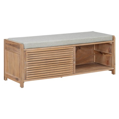 43.3" Shoe Storage Bench, Entryway Storage Bench with Seat Cushion, Wood End of Bed Bench With Sliding Door for Entryway Living Room Bedroom Brown