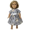 Charming doll dress featuring a cute mouse in playful, adorable poses perfect for adding a touch of whimsy to any collection! Handmade with machine washable fabric, dress closes in the back with Velcro. Dress features a gathered skirt with a white satin ribbon across the waist. Shown on 18 inch girl dolls, this fits American Girl, Our Generation and My Life dolls. This listing is for one doll dress, the doll is not included.