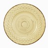 16 Piece Stoneware Dinnerware Set, service for 4. This set is both modern and elegant featuring a raised weave distressed design. The chocolate border and swirls throughout are delicately positioned on the yellow/buttercup background to add that perfect balance. Made of fine and durable stoneware. Set includes 4-10.5" dinner plate, 4-8.5" salad plate, , 4-12 ounce mug measuring 5" x 3.5" x 4.25" tall, and 4-cereal bowls measuring 6" x 6" x 2.5" with a 20 ounce capacity. Dishwasher and microwave safe.
