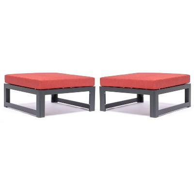 Product Name: LeisureMod Chelsea Outdoor Patio Green Aluminum Ottomans With Cushions Set of 2 in Green