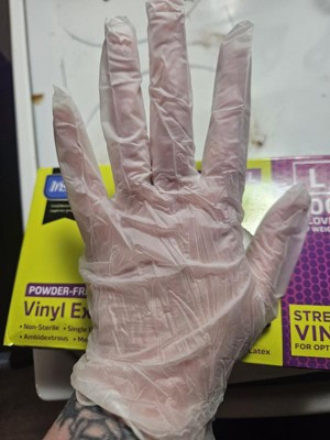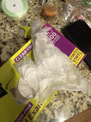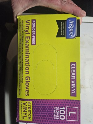 Inspire Exam Medical Gloves Clear Vinyl Gloves Work well. I was happy to try these for quick recovery things like handling raw proteins and other things you would like to keep your hands cleaner. I wouldn’t use them for long projects but shorter ones they work well.