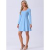 Allegra K Women's Vintage Long Sleeve Beaded Square Neck High Waist A-Line Dress Sky Blue X-Large