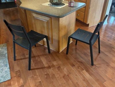 [This review was collected as part of a promotion.] These aluminum outdoor chairs are great for small spaces. They are sturdy and durable while still being easy to assemble. I love that they are stackable as well to make room when needed. Overall, they’re a practical and stylish choice for outdoor spaces. A really great product.