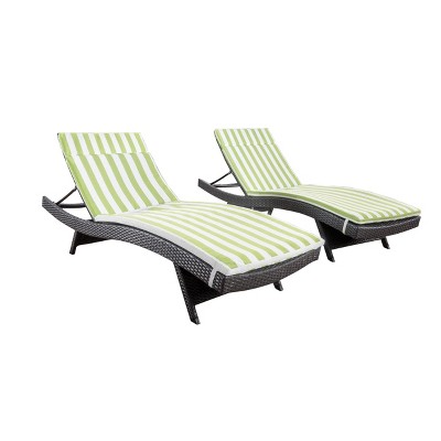 GDFStudio Olivia Rattan Adjustable Chaise Lounges with Striated Cushion(Set of 2), Green /Gray