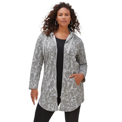 Your answer to everyday ease, this easy layer is a closet essential. Soft and comfy, with a zip front and shirttail hem for a looser style. Made extra-long to cover everything you want it to, this is the go-to over all your favorite tops and leggings. Drawstring at hood. Roaman’s has your style in your size. Our goal is to provide clothing for plus size women that matches the fun styles of current fashion trends and is uniquely flattering, feminine, and personal, all made expressly for your curves (sizes 12-44)..